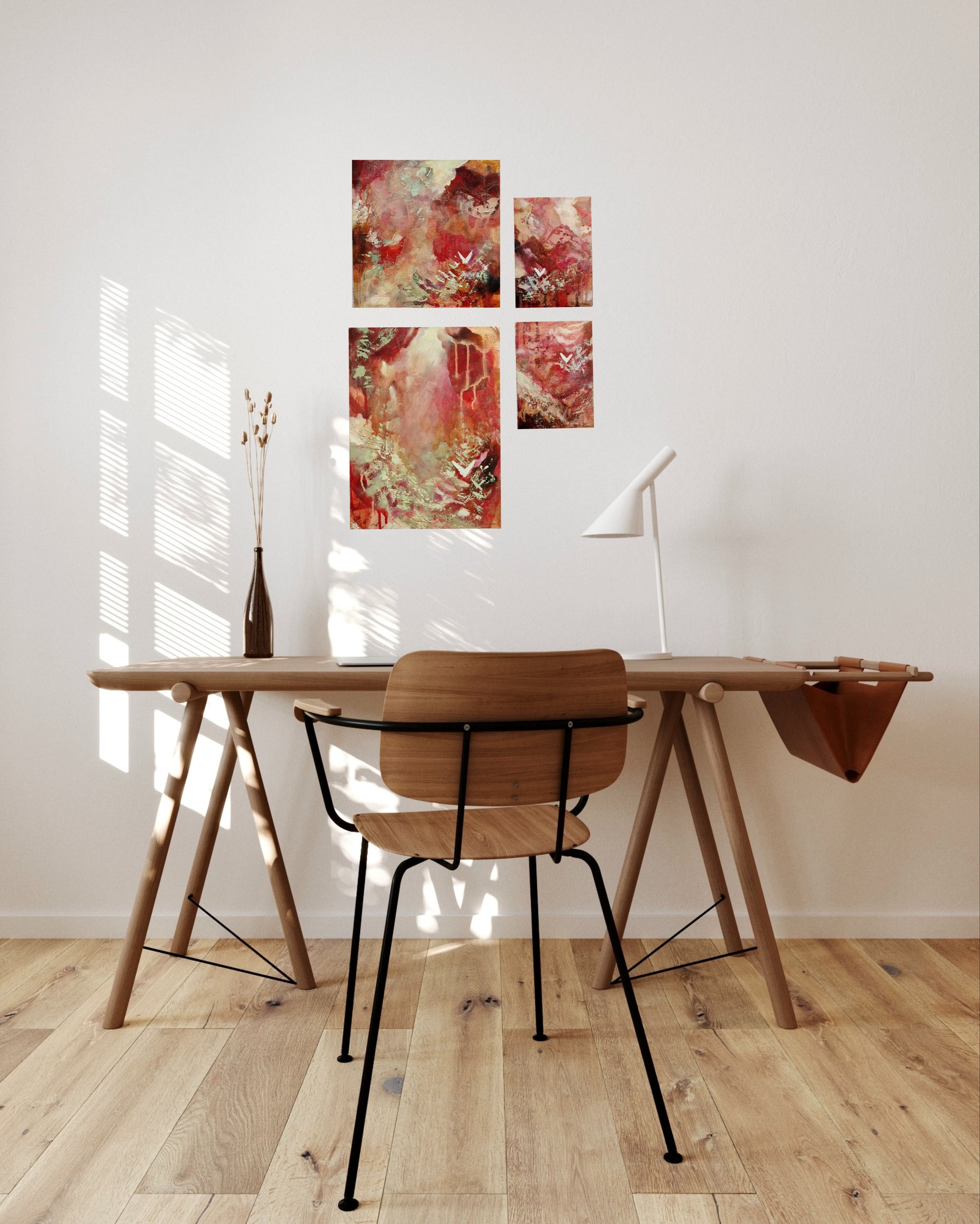An intuitive collection of abstract paintings that came into being through exploration of colour and texture.